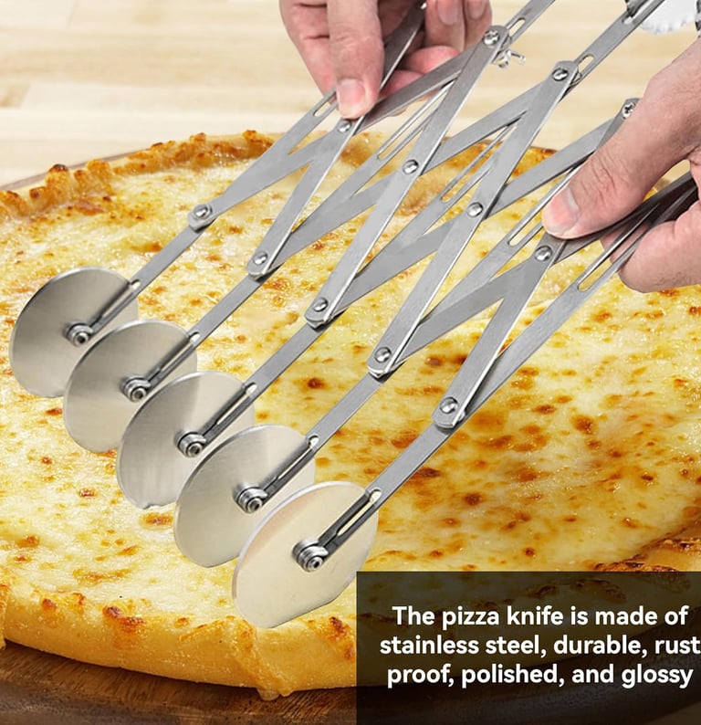 The 5-Wheel Adjustable Pastry Cutter is a versatile kitchen tool designed for precise and consistent cutting. Whether you're making pasta, pizza, brownies, or cookies, this tool allows you to create clean, evenly spaced cuts in one smooth motion.