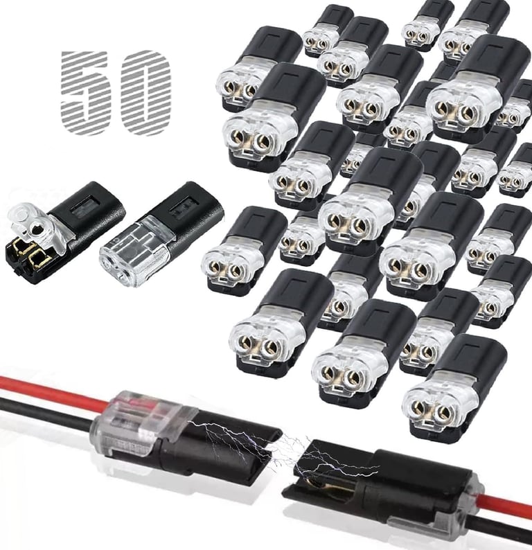 Perfect for LED strip lights, decorative lighting, model kits, and low-voltage wiring projects, this 50-piece set provides enough connectors for multiple installations and repairs.