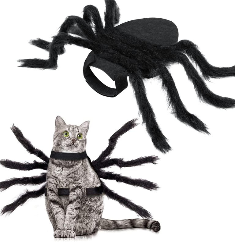 Many customers love how adorable their pets look in this costume, praising its realistic spider design and fun Halloween vibe. Some users note that it is important to measure pets carefully for proper fit. A few reviewers mention that very active pets may try to bite or tug the legs, but overall the costume is well-received and adds a fun festive touch.