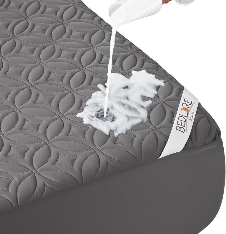 The BEDLORE Waterproof Mattress Protector is a high-quality bedding accessory designed to protect your mattress from spills, sweat, pet accidents, and everyday moisture, all while keeping your sleep comfortable and quiet. Its top layer features soft, breathable microfiber for a plush feel, and the ergonomically designed filling ensures noiseless use so you can sleep undisturbed.