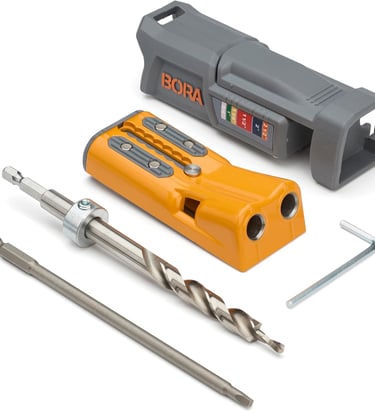 The BORA Compact Mini Pocket Hole Jig Pro is a smart, compact joinery tool designed to create accurate pocket holes quickly and effortlessly. Its self-calibrating system automatically adjusts to the thickness of your material, removing the need for manual measurements or repeated setup.