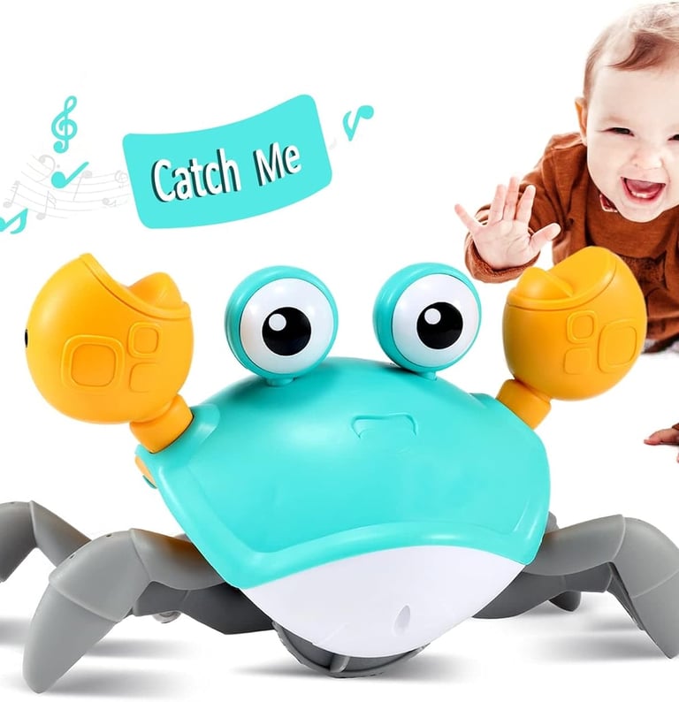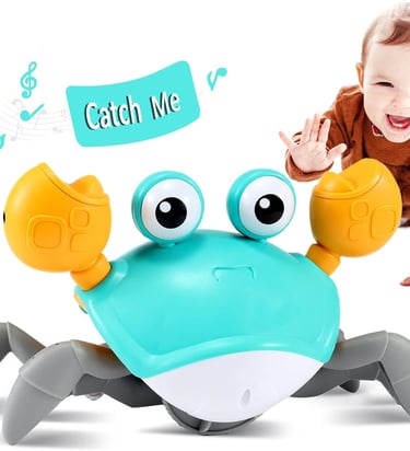 The Control Future Crawling Crab Baby Toy is a fun, interactive toy designed to encourage babies’ development and motor skills. Suitable for infants from 0 to 36 months, this crab toy moves quickly and sideways, mimicking real crab movements, and comes with playful sounds, music, and lights to engage your child. It features obstacle-avoidance sensors that make it reverse direction when it approaches objects, keeping the play area safe.