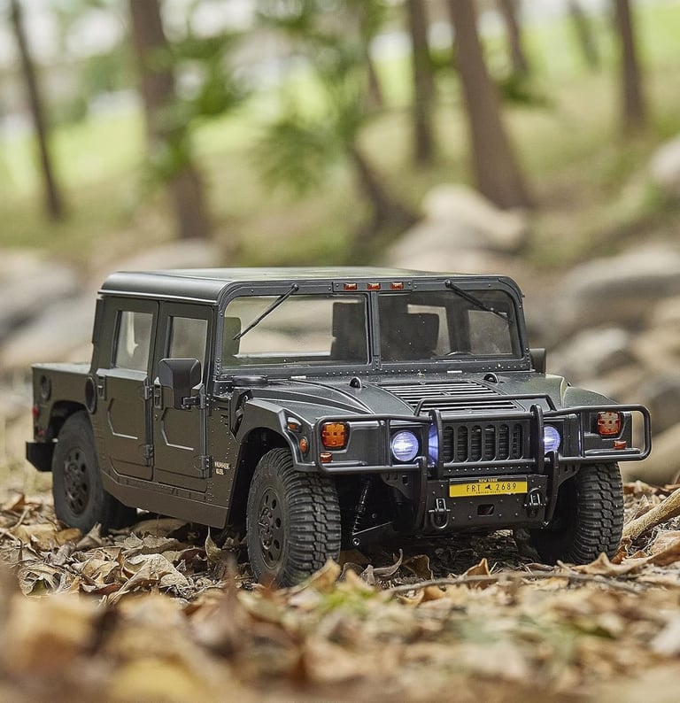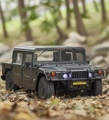 Built with durability in mind, the 1/12 HMMWV H1 has independent suspension on all wheels, metal drive shafts, and reinforced chassis components to withstand rough terrain and aggressive play. Its detailed interior, including tires, wheels, and rearview mirrors, adds authenticity, making it both a toy and a collectible model.