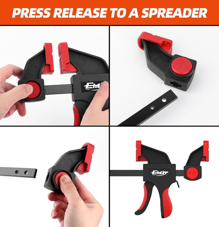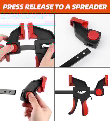 Designed for one-handed operation, the trigger mechanism allows fast tightening while the quick-release lever makes repositioning effortless. A smart, quick-change button lets you convert the clamp into a spreader within seconds—simply remove the jaw, reverse it, and reattach it for spreading applications up to approximately 43 inches.