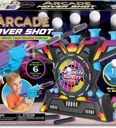 The Game Zone Arcade Hover Shot is an interactive tabletop game designed to bring arcade-style excitement right into your home. Perfect for kids, teens, and adults, this compact game challenges players to test their aim and coordination as they try to knock down floating balls using a foam dart blaster and levitating hover targets. It’s a unique blend of active play and skill challenge that works great for family game nights, friendly competitions, or solo practice.