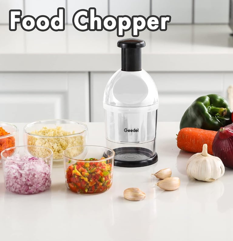The Geedel manual food chopper is a compact kitchen gadget designed to make everyday prep work faster, safer, and easier. Using a simple slap-down press mechanism, the internal stainless steel blade instantly chops onions, garlic, nuts, and vegetables without electricity or knife skills.