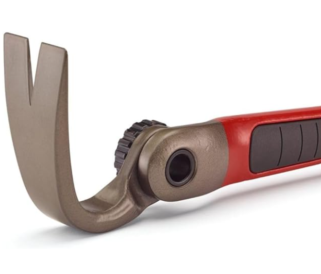 What sets this wrecking bar apart is its adjustable articulated claw, which can be positioned in nine different steps. This flexibility allows the user to find the optimal working angle in tight or awkward spaces, reducing strain while increasing efficiency. The notched claw makes nail pulling smooth and controlled, even when dealing with stubborn fasteners embedded deep in wood.