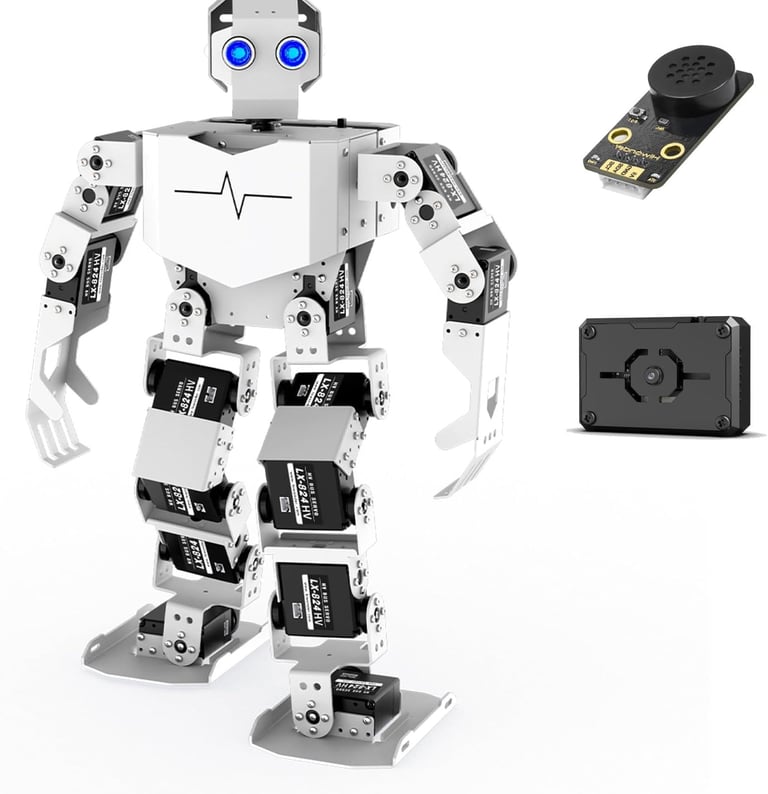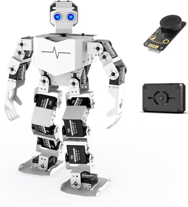 The LewanSoul Tonybot is a 17-degree-of-freedom (17DOF) humanoid robot designed for hands-on STEM learning. Perfect for beginners and advanced users alike, it supports Arduino, Python, and Scratch programming, offering a versatile platform to explore robotics, AI vision, and interactive voice commands.