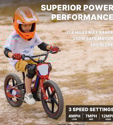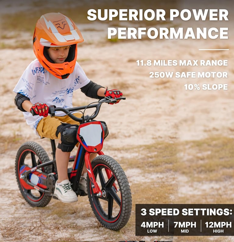 Equipped with multiple speed modes, the bike allows parents to control performance based on the child’s skill level. Beginners can start slow, while more confident riders can enjoy higher speeds as they improve. The twist-throttle design helps kids learn real throttle control instead of simple on/off riding.