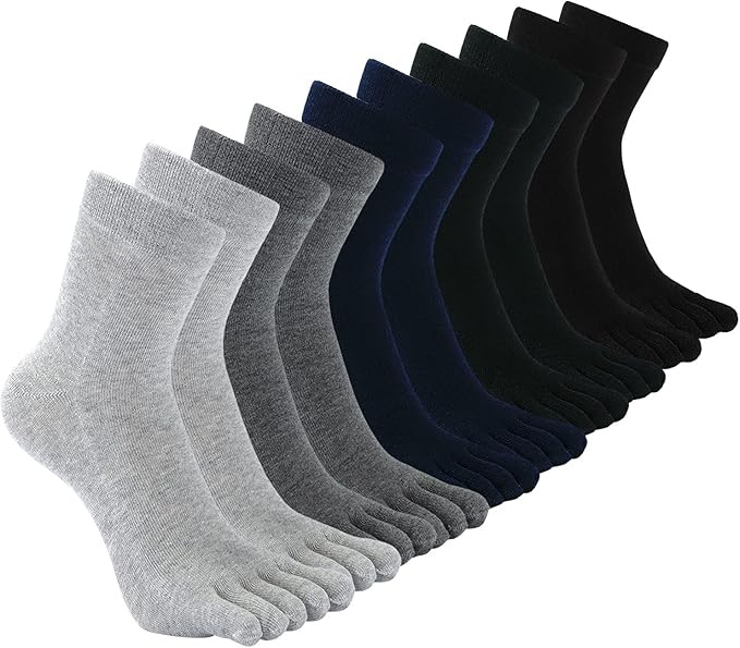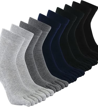 This product is a pair of men’s cotton “five‑toe” or “toe‑separated” socks designed to offer a more natural, barefoot‑like feel while keeping feet cushioned and comfortable. Made from soft, breathable cotton, these socks give each toe its own pocket — which helps reduce friction, prevent toes from rubbing together, and improve overall foot comfort during walking, running, or daily wear. The stretchy toe pockets adapt well even if you have wider or larger feet.