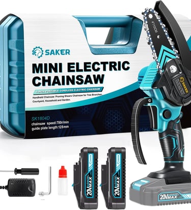 The Saker Mini Cordless Electric Chainsaw is a lightweight and efficient tool designed to simplify garden maintenance, pruning, and small wood-cutting tasks. Equipped with a strong motor and a sharp 4-inch chain, this handheld saw delivers smooth cutting performance on branches, bushes, and small logs without the limitations of power cords.