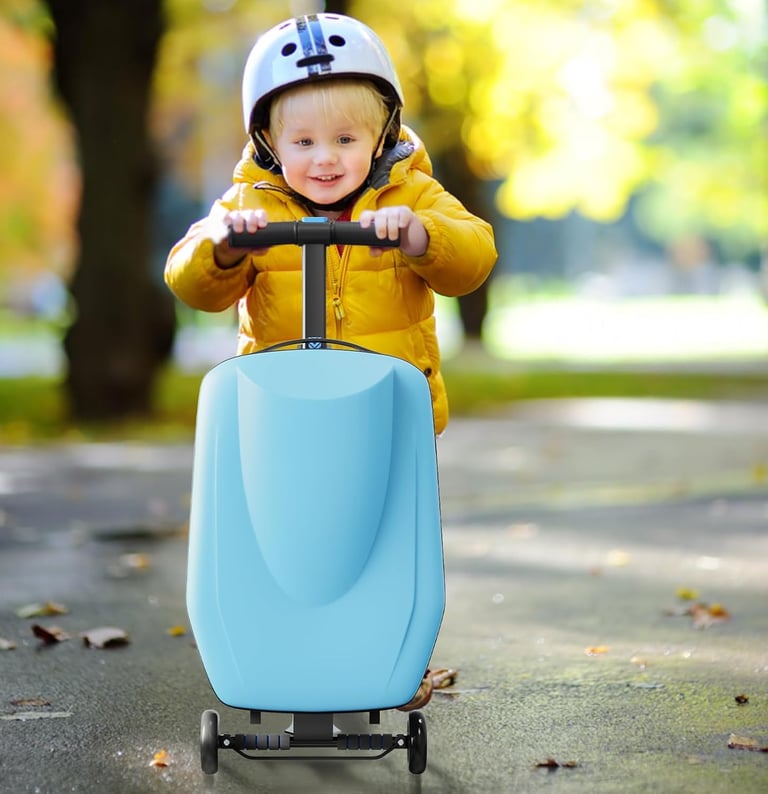 The TABU 21" Scooter Suitcase is a smart 2-in-1 travel solution that combines a carry-on suitcase with a foldable scooter. Designed for kids and teens, it allows travelers to ride through airports while keeping their luggage with them.