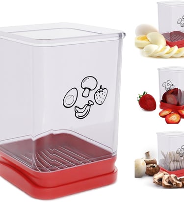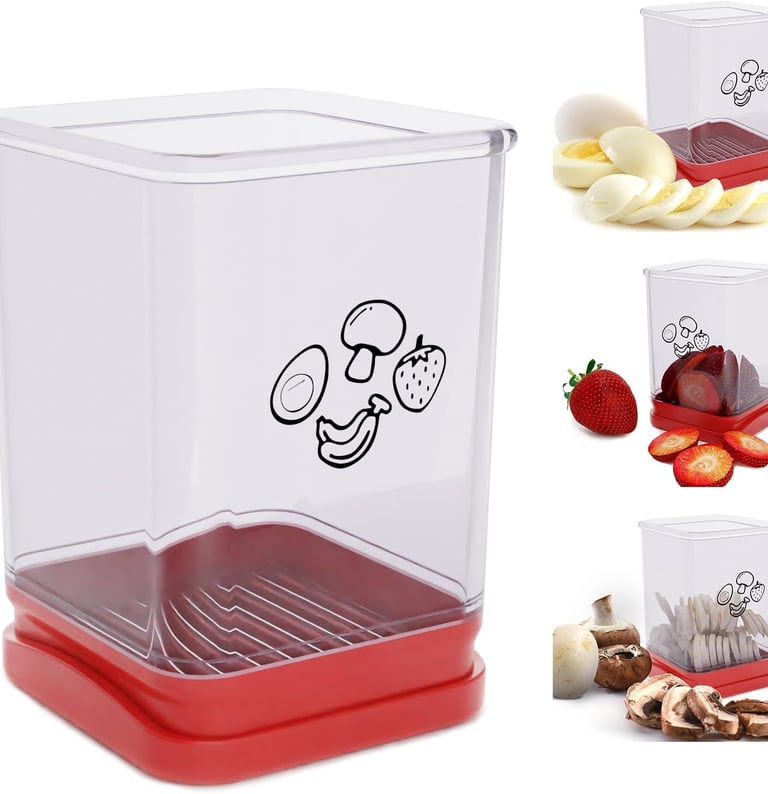 Built with a stainless steel round blade inside and a smooth ABS outer shell, it keeps your hands protected while delivering fast, even slices. Simply press down, and your strawberries, bananas, grapes, mushrooms, or boiled eggs are perfectly cut — directly into the cup.