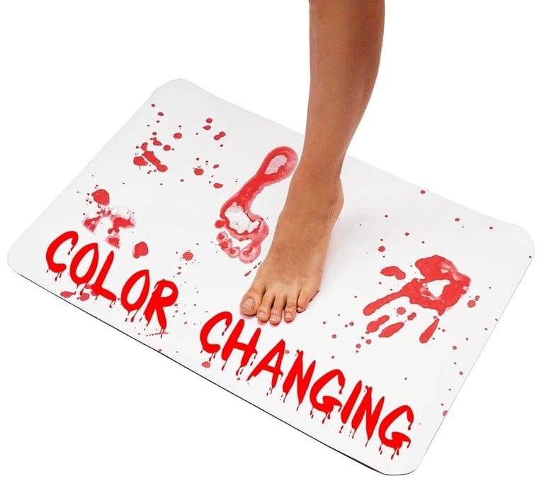 Transform your bathroom into a scene straight out of a horror movie with The Murder Mat, the ultimate color-changing bath mat that reveals realistic bloody red footprints when wet. Perfect for Halloween décor or hilarious pranks, this spooky mat creates shock and laughter in equal measure. Made from high-quality absorbent materials, it dries quickly and is completely safe, leaving no stains or residue. Ideal for placing near the shower or tub, it adds a creepy yet fun touch to your bathroom. Bring out your dark sense of humor with this terrifyingly fun and unique bathroom decoration.