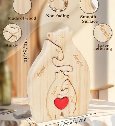 The UNIGIFTIME Personalized Wooden Hugging Bear Family Puzzle from UNIGIFTIME lets you customize 2–7 family names on adorable hugging bear figures.