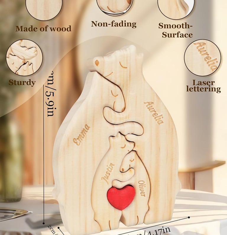 Each name is laser-engraved for a clean, long-lasting finish that won’t fade. Crafted from natural pine wood, this decorative puzzle represents unity, warmth, and togetherness.