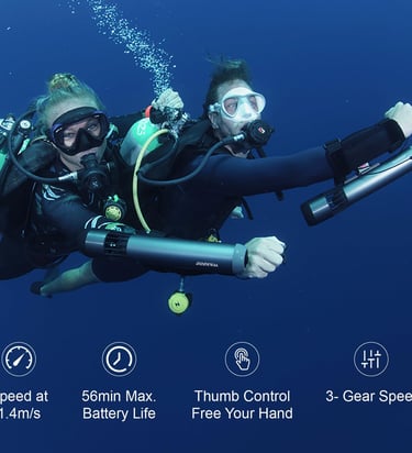 With its high-efficiency motor and 3-speed control system, you can glide through water effortlessly or switch to higher speeds for a thrilling ride. Whether you're exploring reefs or enjoying pool time, it adds power and excitement to every movement.